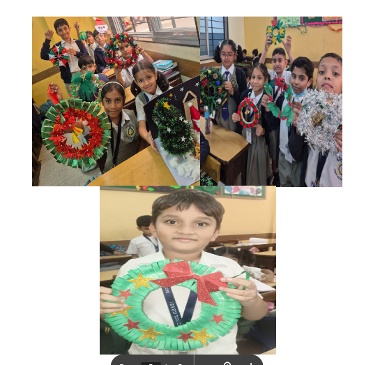 On 15th December 2025, the Primary Section from Grade 1 to Grade 4 enthusiastically participated in a Christmas Article Making Competition. Each grade was assigned a unique theme to showcase their creativity: Grade 1 crafted cheerful Snowmen, Grade 2 designed beautiful Christmas Wreaths, Grade 3 created impressive Christmas Pop-up Dioramas, and Grade 4 made delightful Christmas Trees and Candy Canes.